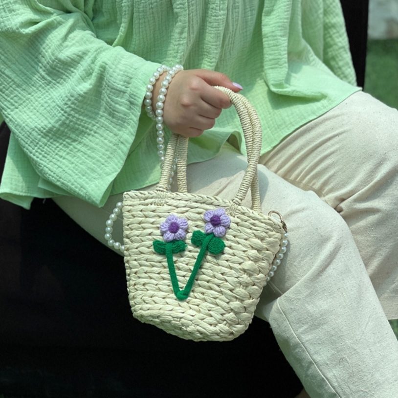کیف دخترانه حصیری ساحلی گلدار 687